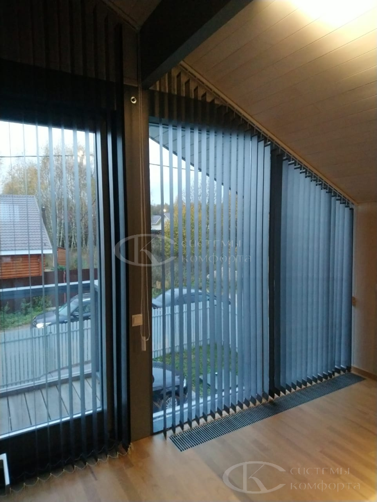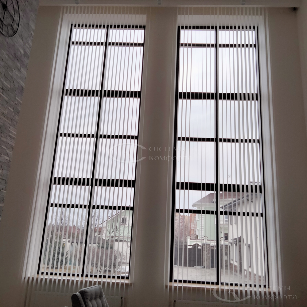 Если в вашем доме есть французские окна до пола, стеклянные двери на террасу, двустворчатые конструкции или большой эркер – вертикальные жалюзи созданы именно для таких оконных систем.