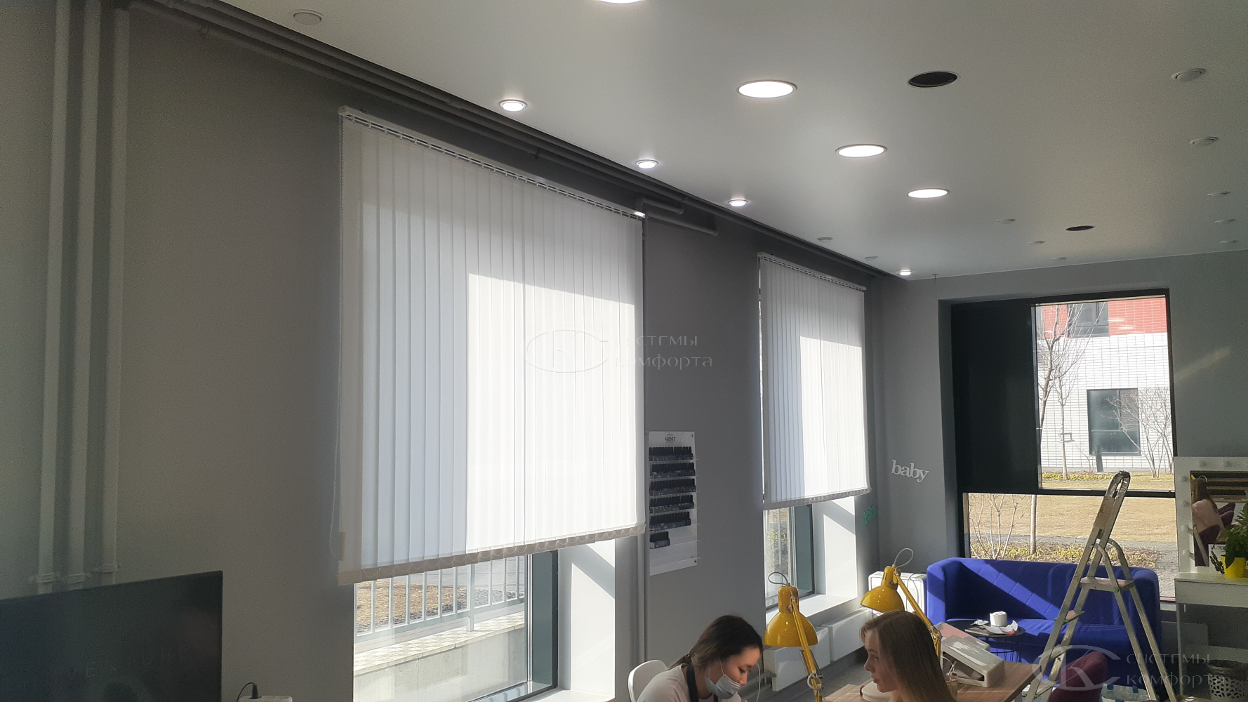 Вертикальные тканевые жалюзи — недорогой вариант солнцезащитной системы для дома или офиса. Они хорошо защищают помещение от солнца. Недостатком такой системы считаются быстрая поломка при неаккуратном обращении и загрязнение ткани при проветривании помещения. Но если очистить от грязи и пыли их не получается, то задача решается путем недорогой замены ламелей. Из преимуществ можно отметить огромный выбор цветов и фактуры, а также возможность нанесения фотопечати: картинки или логотипа. Бесплатный замерщик поможет выбрать модель и определиться с решением. Персональный менеджер поможет сделать предварительный расчет.